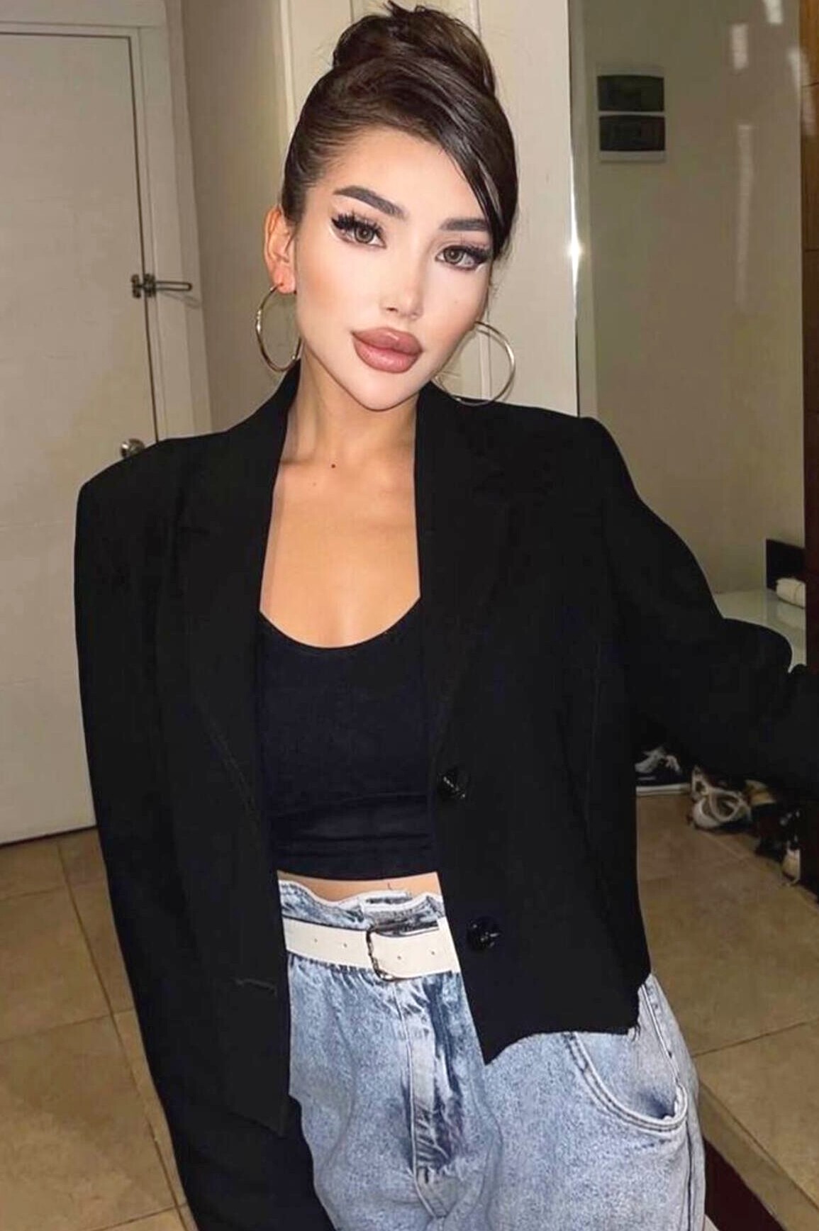 Hair color: black